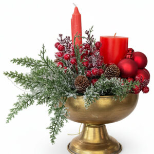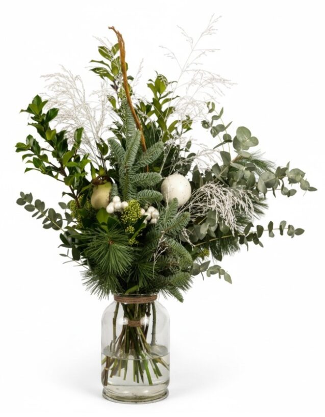 Fresh christmas cut flowers ,greenery andΒ accecories (Includes glass vase )
