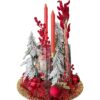 A charming artificial forest arrangement with frosted stems, pine, and decorative jars. Great for Christmas or winter decoration.