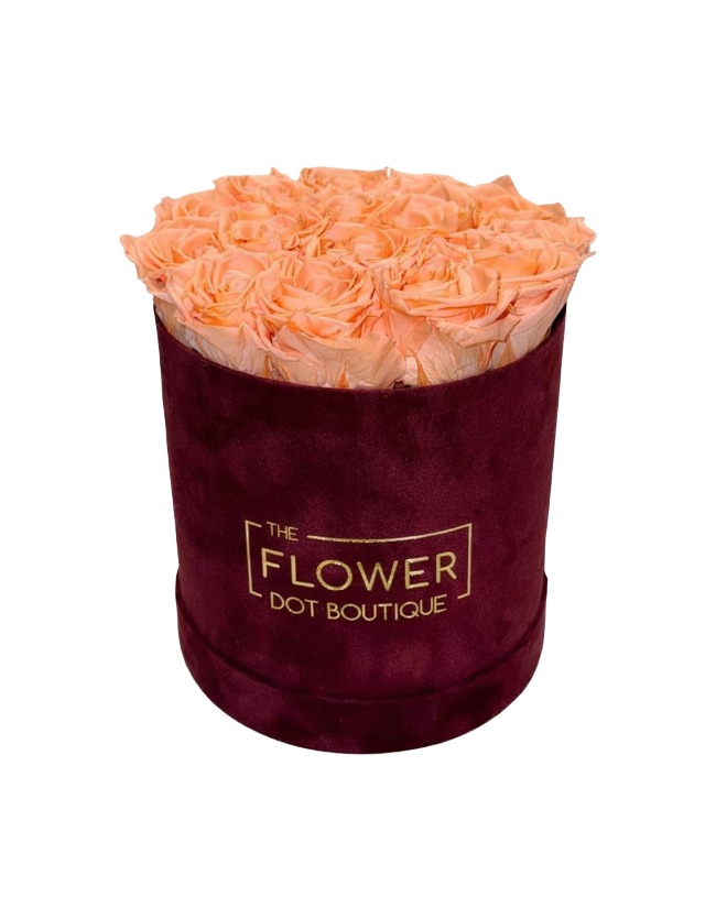 A Velvet box of 15 stunning, carefully chosen preserved peach roses. These roses can last up to 3 years